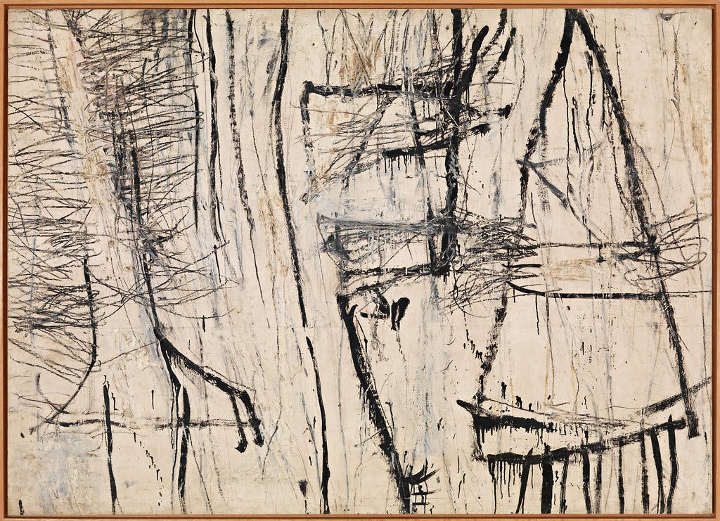خطوط ناخوانا در نقاشیهای آبسترهی "تومبلی" با رنگ و روغن و مداد و پاستل و رنگهای محدود کار شدهاند.