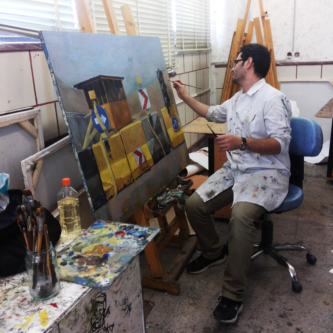 هنرمند در کارگاهش