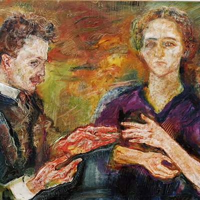 کوکوشکا از هنرمندان برجسته اکسپرسیونیسم است که در ترسیم چهره ها سعی در نشان دادن شخصیت و حساسیت درونی آدم‌ها دارد و این موضوع بیشتر متاثر از شخصیت حساس خود اوست. در این تابلو پیکرها در پس‌زمینه آزاد کار شده‌اند و حرکت ظریف دست های هانس و همسرش اریکا بیانگر حالت روحی این دو و حساسیت نهفته در پسِ چهره متفکرآن هاست.