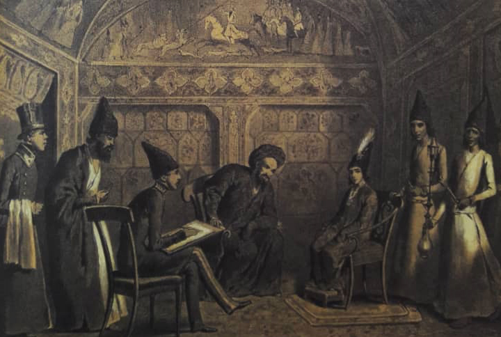 مجلس نقاشی از چهره ناصرالدین میرزا/ تبریز/ 1854 میلادی/ لیتوگراف