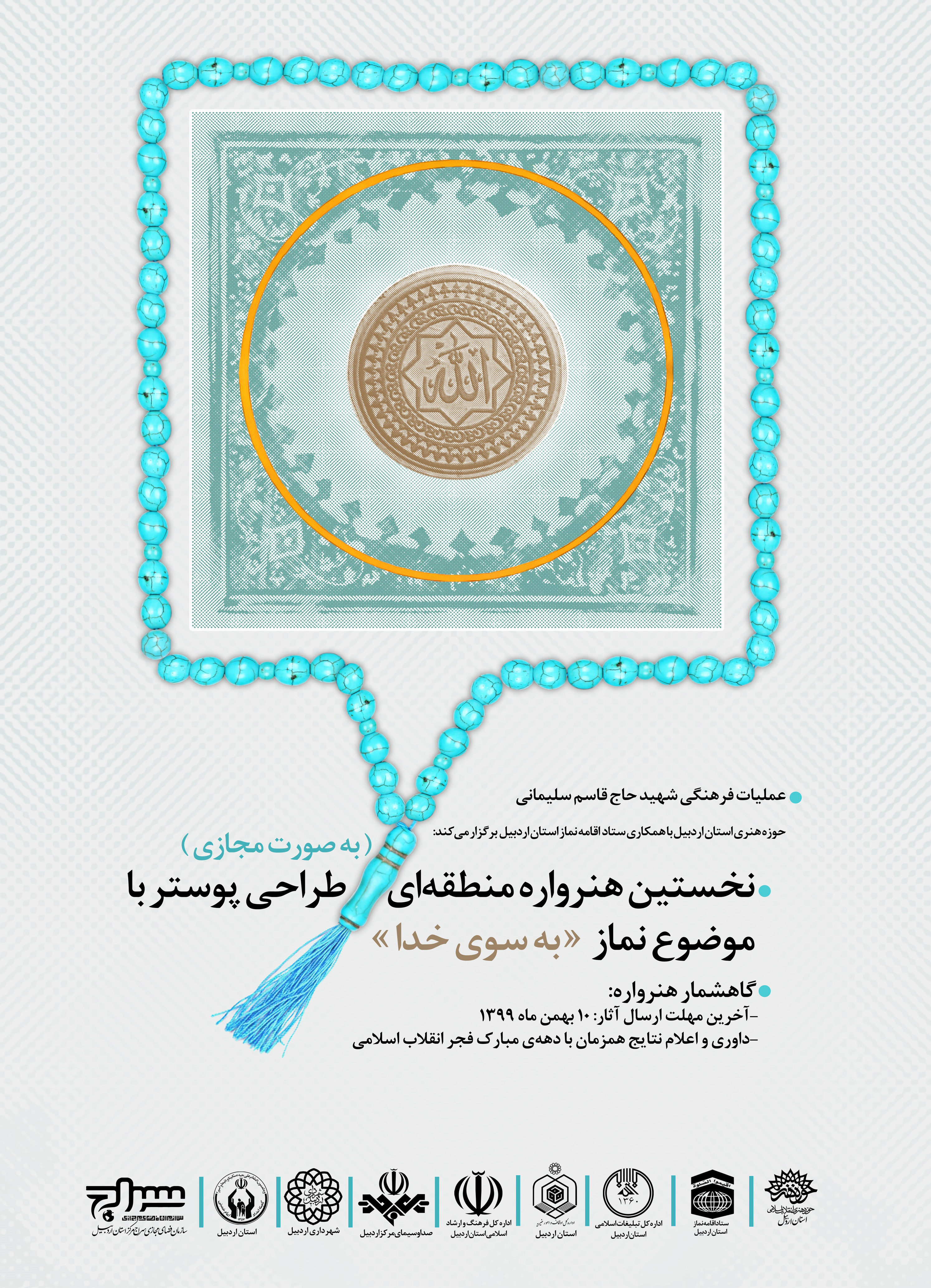 حوزه هنری استان اردبیل با همکاری ستاد اقامه نماز استان، سازمان تبلیغات اسلامی استان، ادارهکل اوقاف و امورخیریه، ادارهکل فرهنگ و ارشاد اسلامی، صدا و سیمای مرکز اردبیل، شهرداری اردبیل، کمیته امداد امام خمینی و موسسه سراج برگزار میکند: