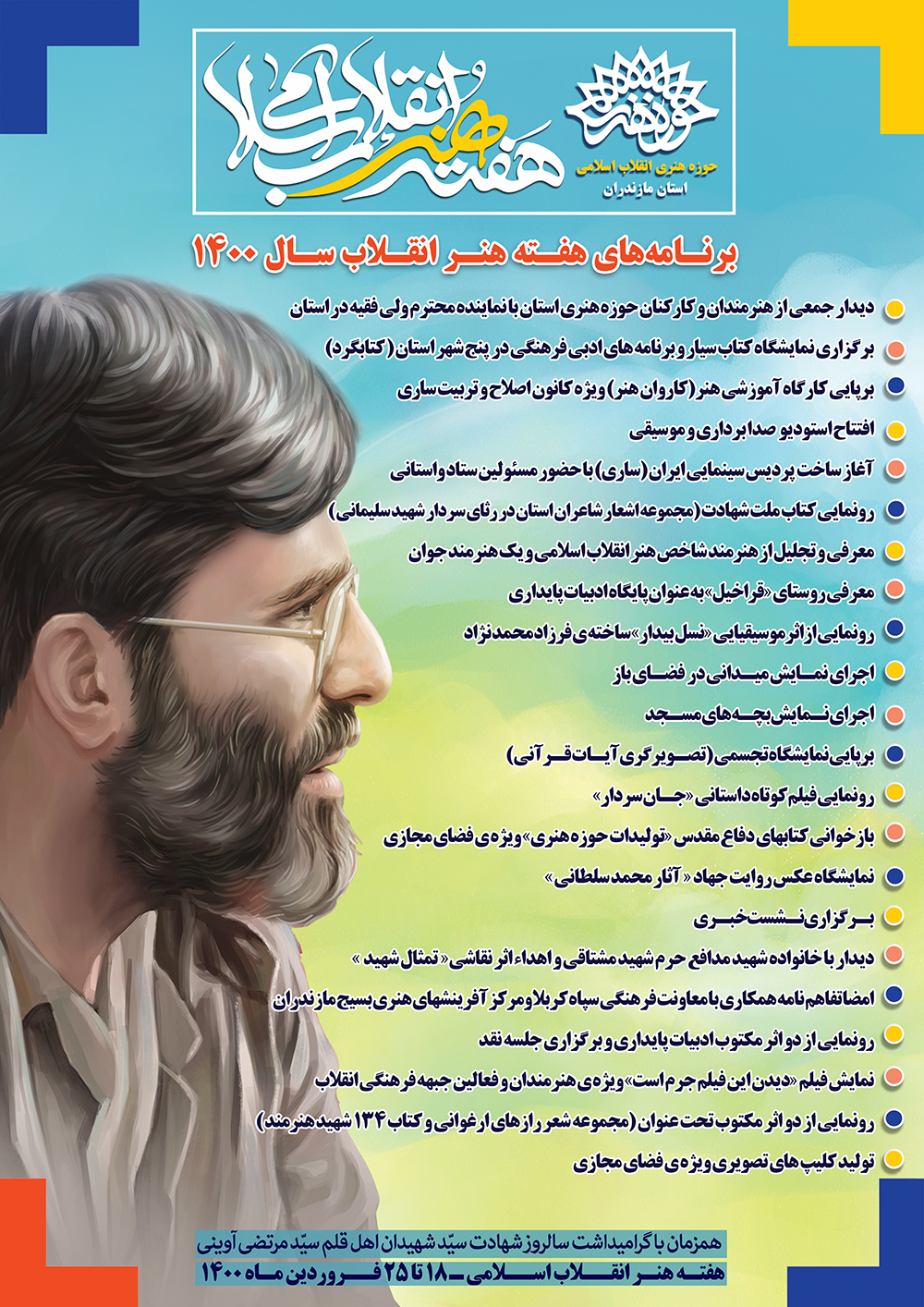 به گزارش روابط عمومی حوزه هنری مازندران « مهدی معصومی گرجی » از اجرای بیش از 20 عنوان برنامه درهفته هنر انقلاب خبر داد.