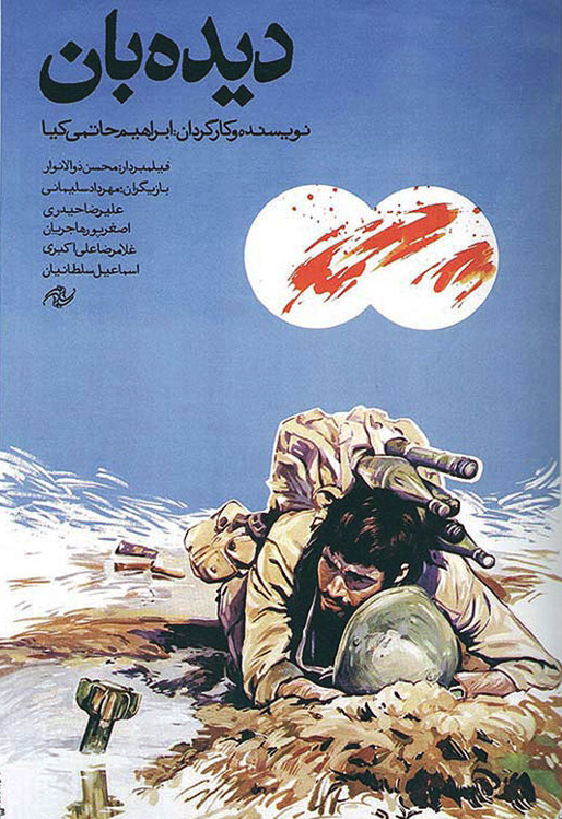 بر این اساس پوستر این فیلم به علی وزیریان یکی از هنرمندان مطرح تجسمی سپرده می شود، او در فرازی از داستان ،عمل نکردن خمپاره در مسیری که باید تا خط مقدم طی شود را که در واقع مهمترین سکانس فیلم دیده بان هم به شمار می رود، طراحی و با تکنیک گواش یر روی مقوا اجرا می کند، تکنیکی که در آن زمان بسیار مورد توجه بسیاری از طراحان پوستر است . در لی آوت پوستر هم از عنصری چون ویزور دوربین استقاده می کند و با رنگ بندی های مناسب به ترکیب بندی خوبی می رسد، اتفاقی که باعث مطرح شدن هنرمندان جوان حوزه هنری در بین طراحان پوستر می گردد.