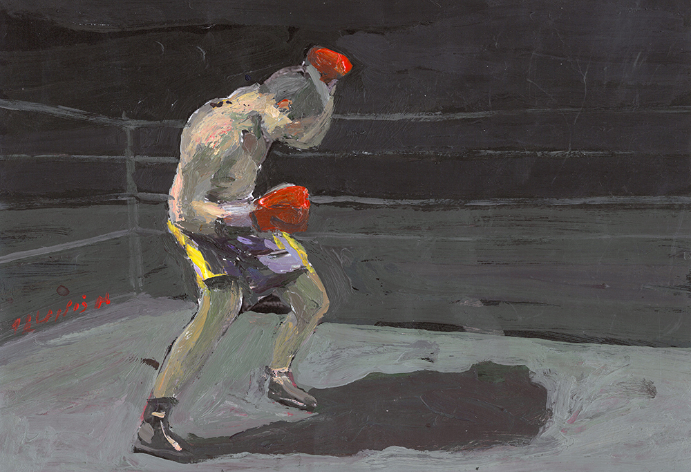 سالهاست که از طریق مشاهده ی تلوزیونی و ویدیویی ورزش های خشن و پر زدوخورد چیزی در خودم را التیام داده ام ، بی حاصلی وحرمان جنگندگان- در برندگی و بازندگی - شکلی از تسلسل و چرخندگی زندگی را برای من تداعی می کند ؛ پیکرهایی که سرنگون می شوند، به پا می خیزند و...در لحظه ی دیدن این مشت ها و گونه ها ی ترکیده به این شکل خودم را آرام می کنم که جهان پر از درگیری و برخوردهای دو انسان و دو برادرست ؛ آنجایی که انسان برای حذف نشدن خود مجبور به حذف کردن دیگری می شود .