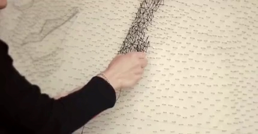 یکی از هنرمندان پیشرو در این سبک، «پتروس وارلیس» یونانی است. او برای خلق هر اثر ـ که از نمای دور شباهت بسیاری به طراحیهای دوره رنسانس دارد ـ حدود یک تا دو کیلومتر نخ مصرف میکند و آن را 3 تا 4 هزار بار بین تکیهگاهها رد و بدل میکند.