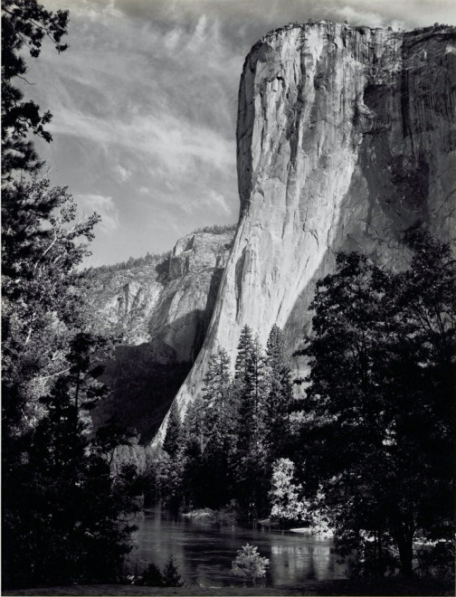 موضوع عکسهای انسل آدامز (1984-1902)، بیشتر طبیعت و چشماندازهای غرب آمریکا بود. فرم بیانی در تصویر برای آدامز اهمیت بیشتری از واقعیت داشت. او نگاتیو را مواد خام عکاسی میدانست و به چاپ به عنوان مرحله اجرا و به ثمر رساندن اثر، اهمیت بسیاری میداد. این حرکت قبلا توسط استیگلیتز شروع شده بود و نگاه آدامز متأثر از آشنایی با او بود. آدامز دخل و تصرفی که به قابلیتهای اساسی نگاتیو آسیب نزند را در عکاسی پی میگرفت و در همین راستا ابداعات زیاد برای تحول در چاپ و دستکاری نور و قابلیتهای بصری داشت. او خودش میگوید: "من یک کنتراست و زمان نوردهی معینی را به عنوان پایه و اساس به دست آوردم بعد با تغییرات نور و عمل سوزاندن و بعضی اوقات با استفاده از فیلترهای گوناگون کنتراست، نگاتیو را چاپ میکنم."