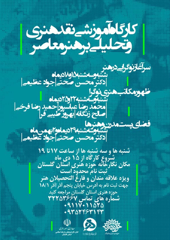وی ادامه داد این کارگاه با هدف بررسی نوگرائی هنر قرن بیستم و هنر معاصر جهان ،نوگرائی در ایران و هنر معاصر ایران و ایجاد شرایط مناسب برای ارتقائ سطح دانش هنرمندان برنامه ریزی شده است.