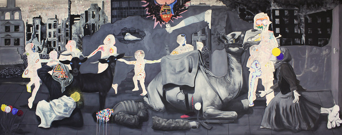 تابلوی "ازگورنیکا تا غزه" (اعتراضی به تمام حملات هوایی که از گورنیکا آغاز و تا غزه ادامه یافت )
