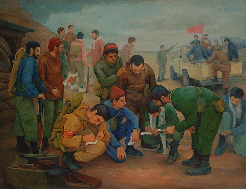 نگاهی به یک لحظه ساده. اتفاقهایی که شاید به راحتی از کنارشان عبور میکنیم. گویی در ثانیه ای بعد همه عناصر جای خود را تغییر میدهند. نقاشی صادقانه بدون تکلف. این ها همه مشخصه های کار حسن رزمخواه در مجموعه نقاشی های جنگ اوست. رزمخواه که جوانی خود را در زمان جنگ سپری کرده است، به گوشه هایی از جنگ اشاره میکند که شاید ساده باشد اما این سادگی بر هنرمند نقاش پوشیده نیست.