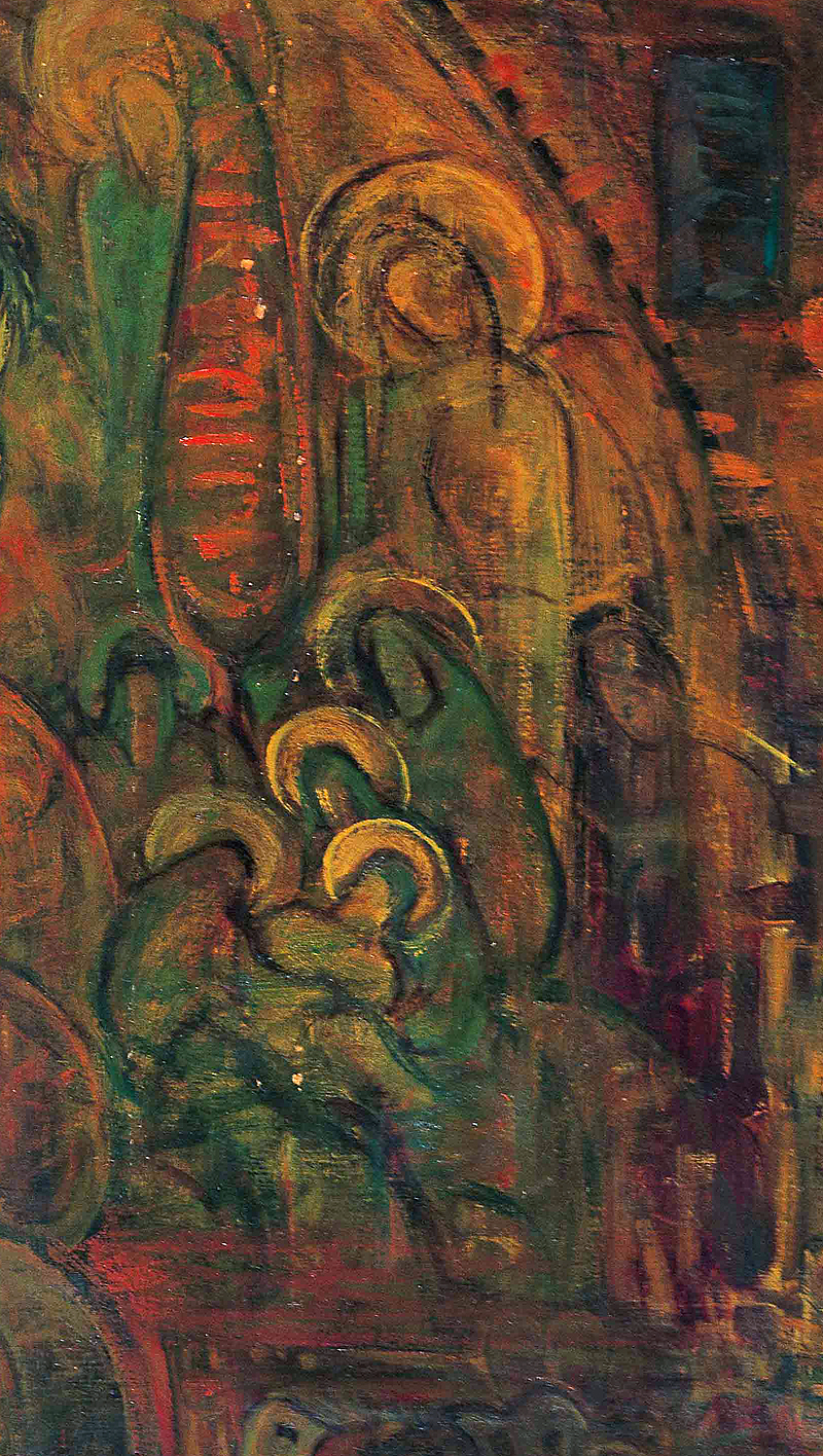 نقاش سعی می کند که قابی بسازد تا ما تمام داستان ماجرارا درک  کنیم. تابلو سرشار از عناصر بصری است ، رنگها و فیگورها – حتی از متن و کتیبه نگاری نیز بهره می گرد. همه اینها را عزیز محمدی از سنت دیرین نقاشی  ایرانی الهام گرفته است.
