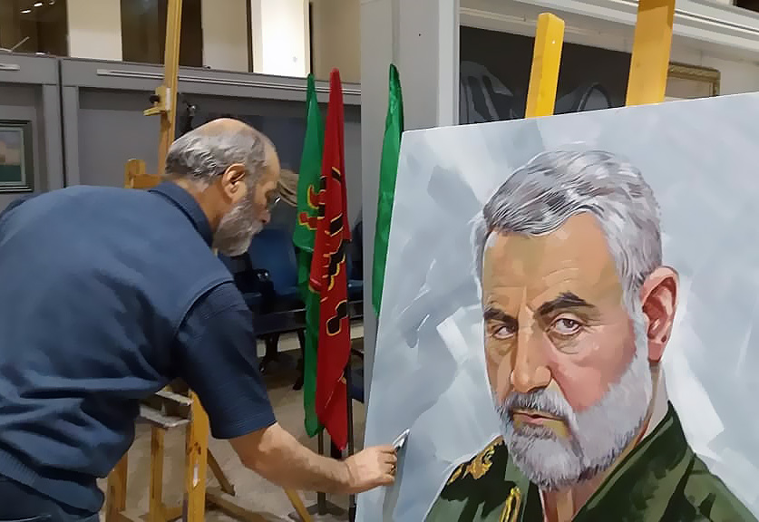 عباس گنجی که تابلویی از سردار شهید حاج قاسم سلیمانی کشیده، گفت: شهادت سردار تلنگری بر پیکر جامعه بود تا از مسیر منحرف نشویم.